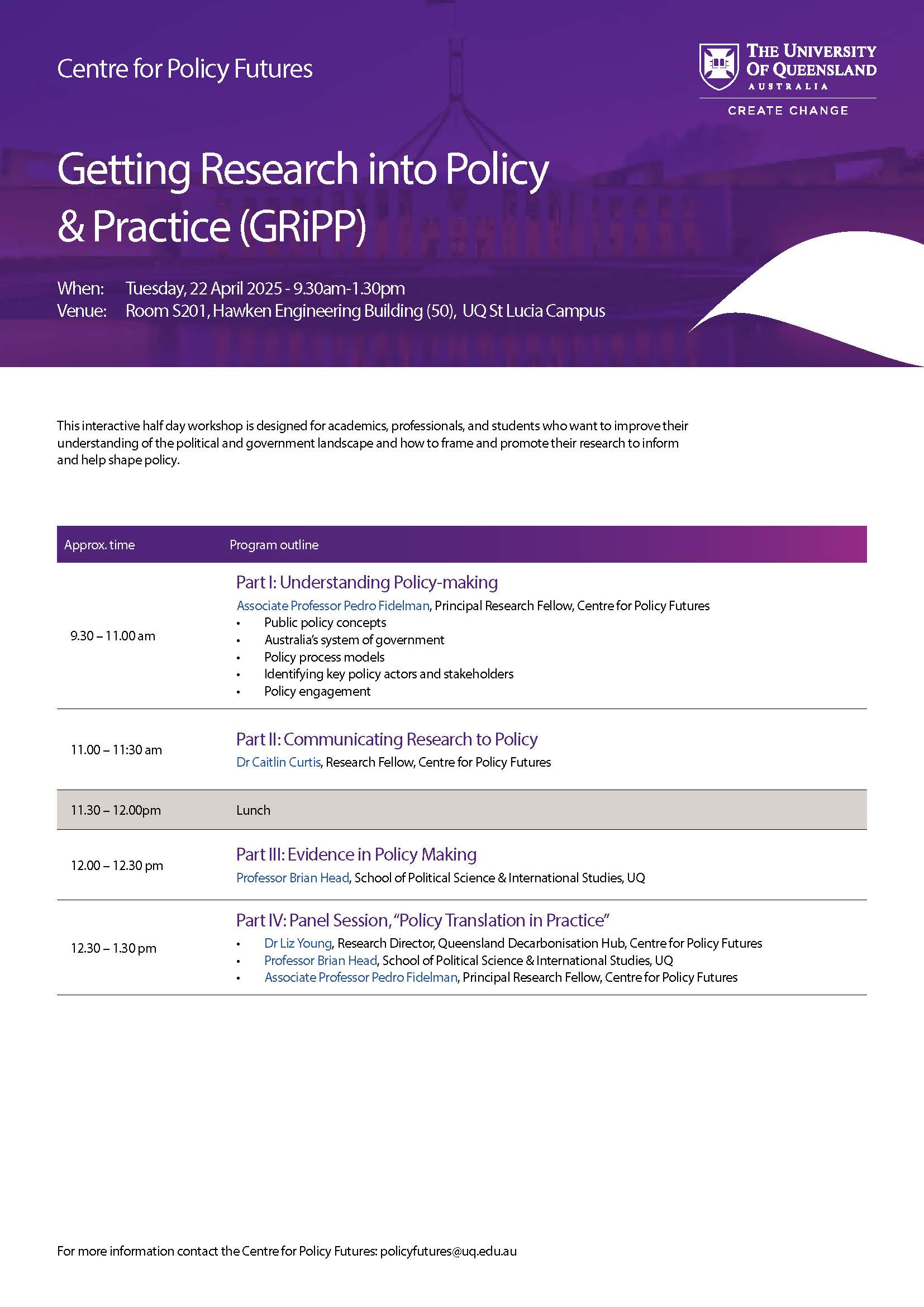 This interactive half-day workshop is designed for academics, research support professionals, and students who want to enhance their understanding of the political and governmental landscape and learn how to frame and promote their research to inform and help shape policy.