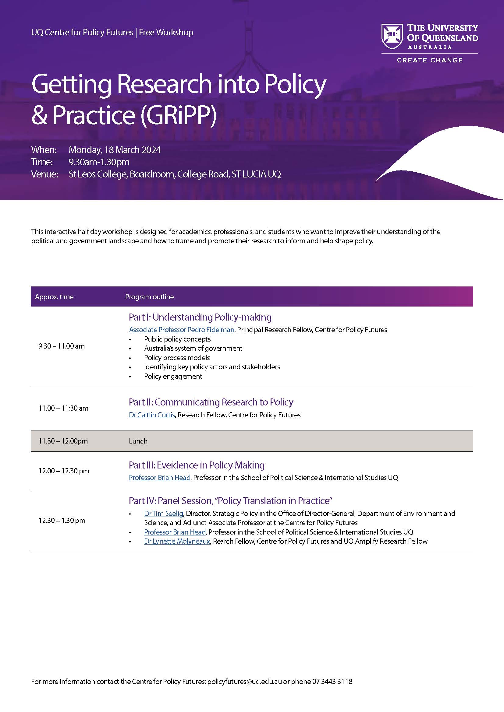 This interactive half-day workshop is designed for academics, research support professionals, and students who want to enhance their understanding of the political and governmental landscape and learn how to frame and promote their research to inform and help shape policy.